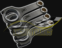 These lightweight, H-beam section connecting rods are forged from AISI 4340 (En24) steel. Heat treated to HRC 35-38 and fully shot-peened for higher fatigue strength. Small end bushed for fully floating pin and big end fitted with high quality ARP PRO-Wave 2000 fasteners. Suitable for high-performance street and competition uses.